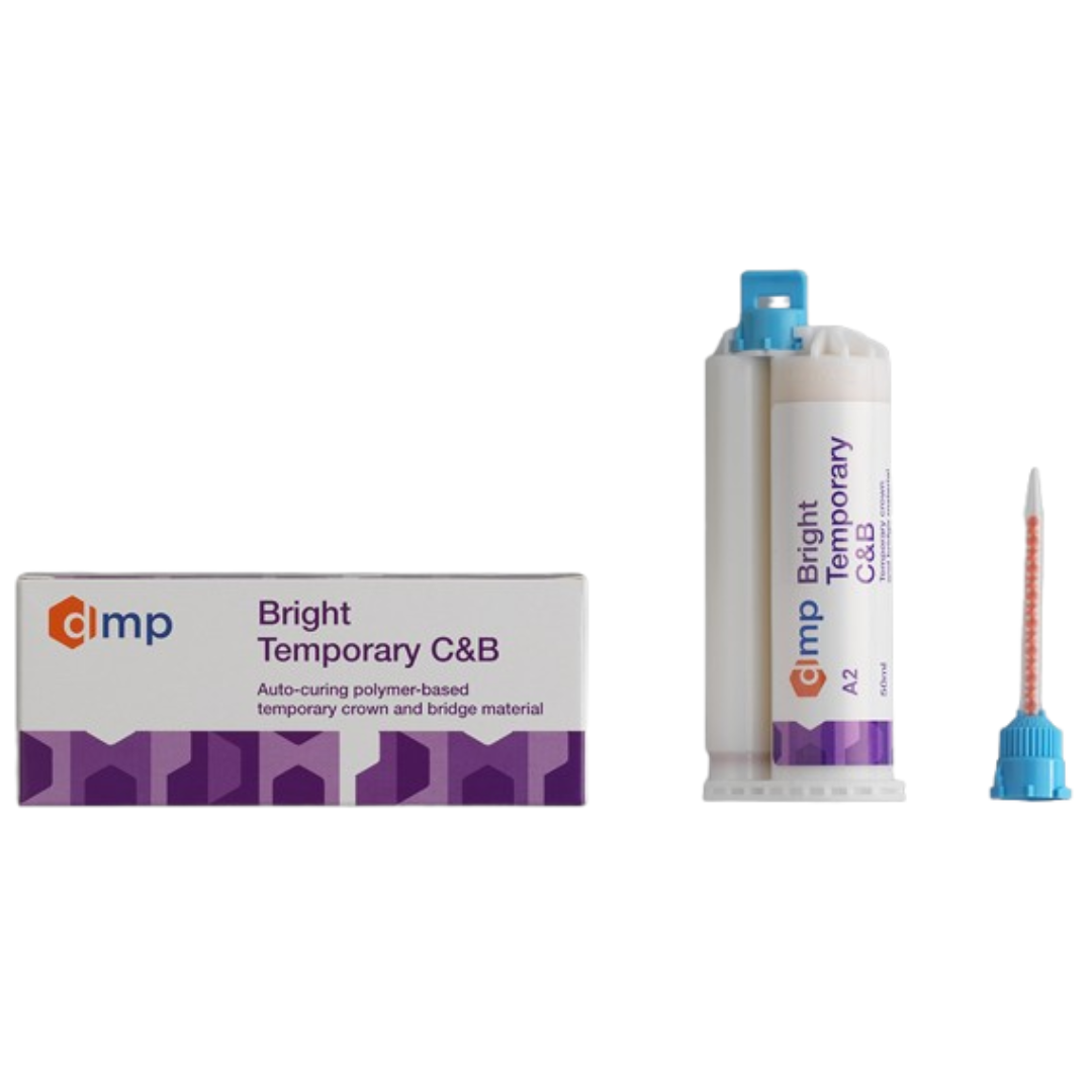 Bright Temporary C&B is a self-curing, moldable composite designated for the construction of temporary crown and bridge restorations, available in three different ratios (1:1, 4:1, 10:1). It offers an excellent aesthetic result and in combination with its optimal mechanical properties is an ideal tool for fabricating provisional restorations. It produces low temperatures during intra-oral setting which protect against damage to the dental pulp.